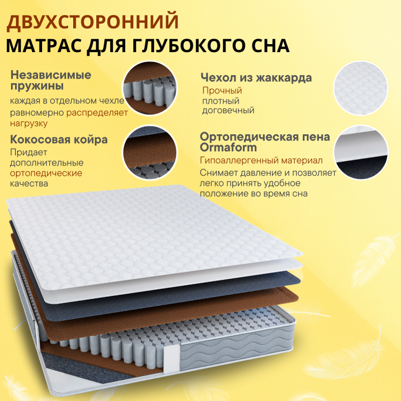 Двусторонний ортопедический матрас с блоком независимых пружин EVS620, кокосовой койрой и ортопедической пеной Ormaform.