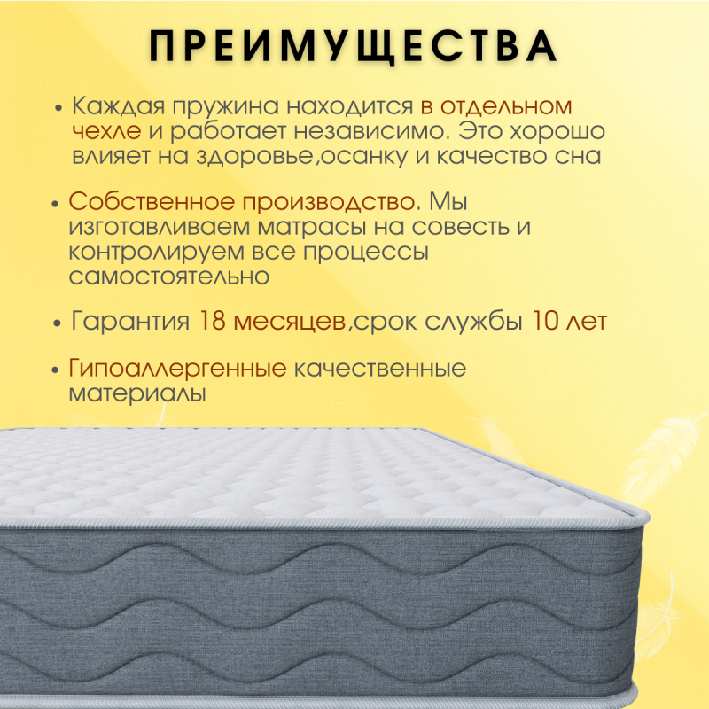 Пружинный блок повторяет изгибы тела, оказывая точечную поддержку позвоночнику, и расслабляет мышцы.
